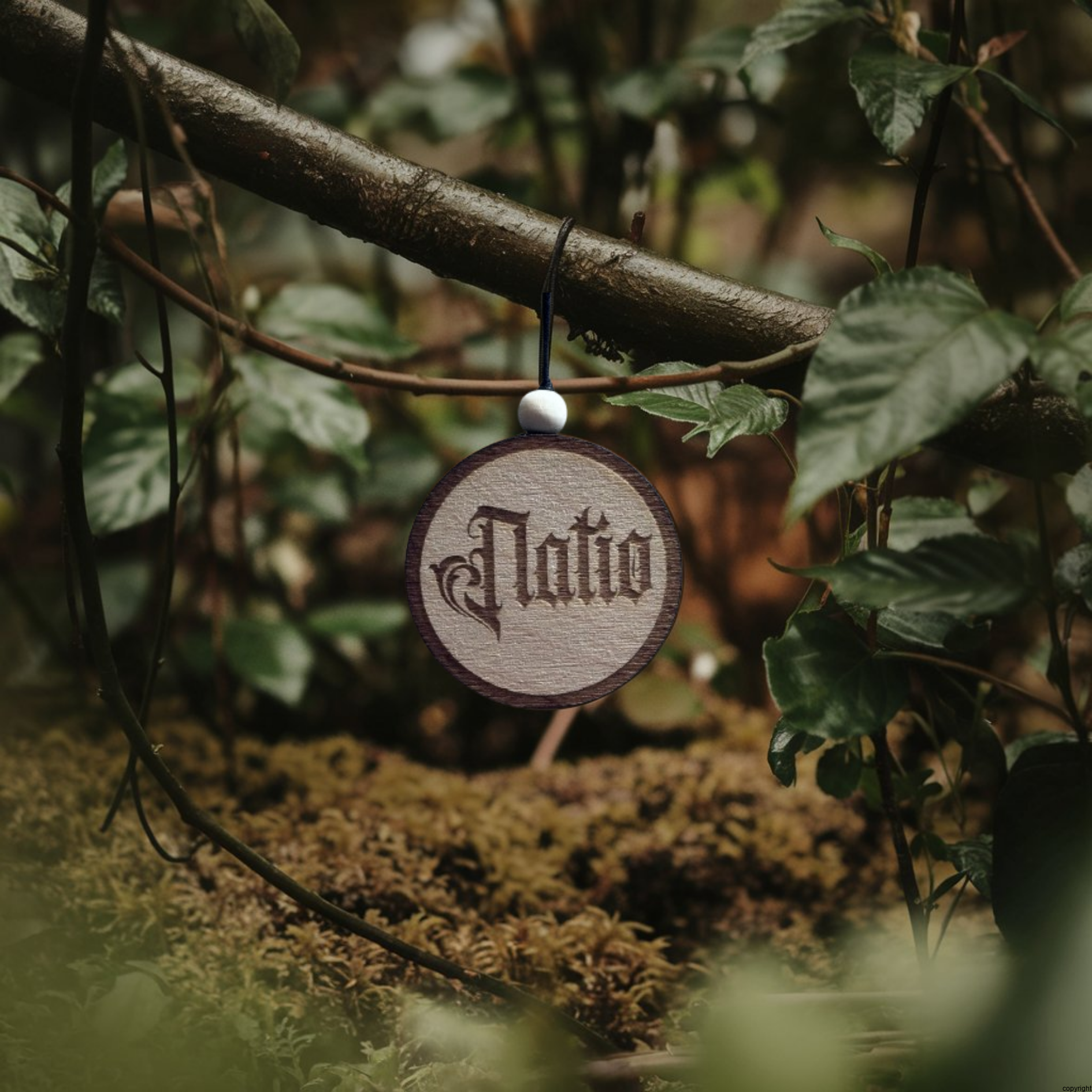 Zawieszka zapachowa: produkt polski. Logo zespołu Natio.